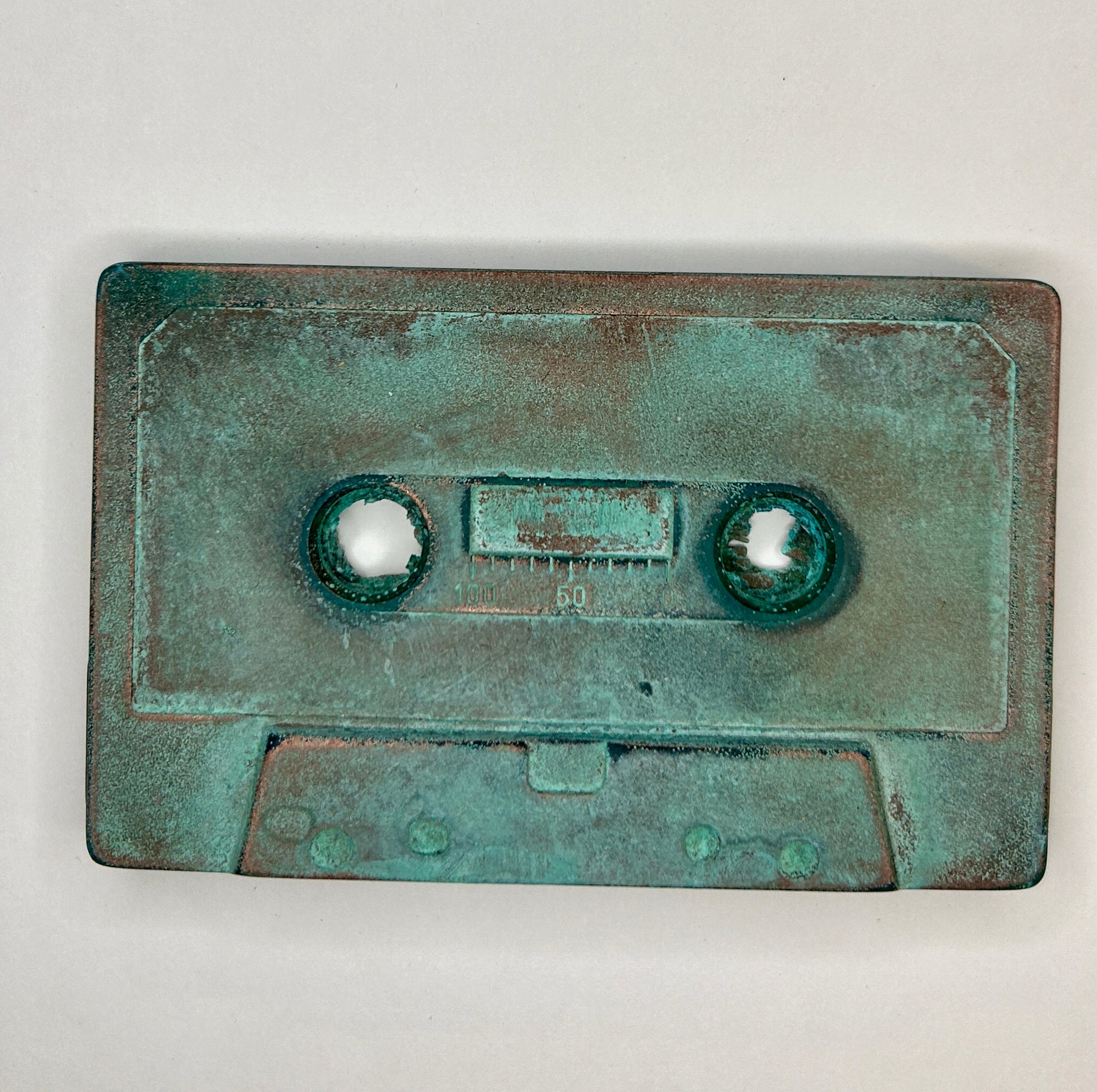 Growing up in the 1980s, we made mixtapes for our most cherished friends to share new music. This mixtape includes a cast resin cassette tape with a unique weathered copper patina on its face. Also included is a QR code that will direct you to a special playlist with an eclectic mix of some of my favorite music from the 1980s.